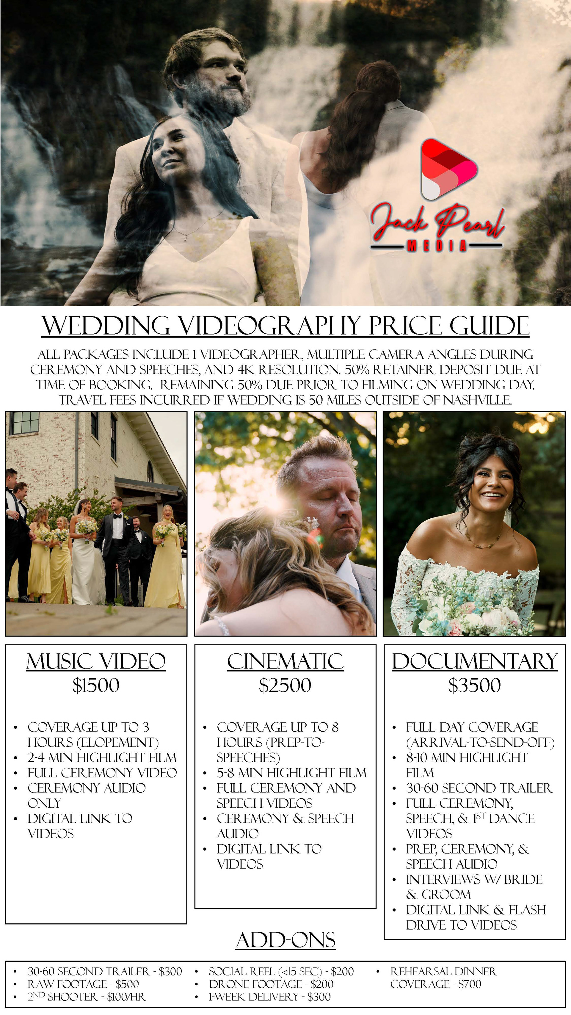 I have a passion for capturing once in a lifetime moments, such as weddings, and transforming those memories into cinematic keepsakes for couples and families. Below is a gallery of a few of my wedding films and other important life moment videos.